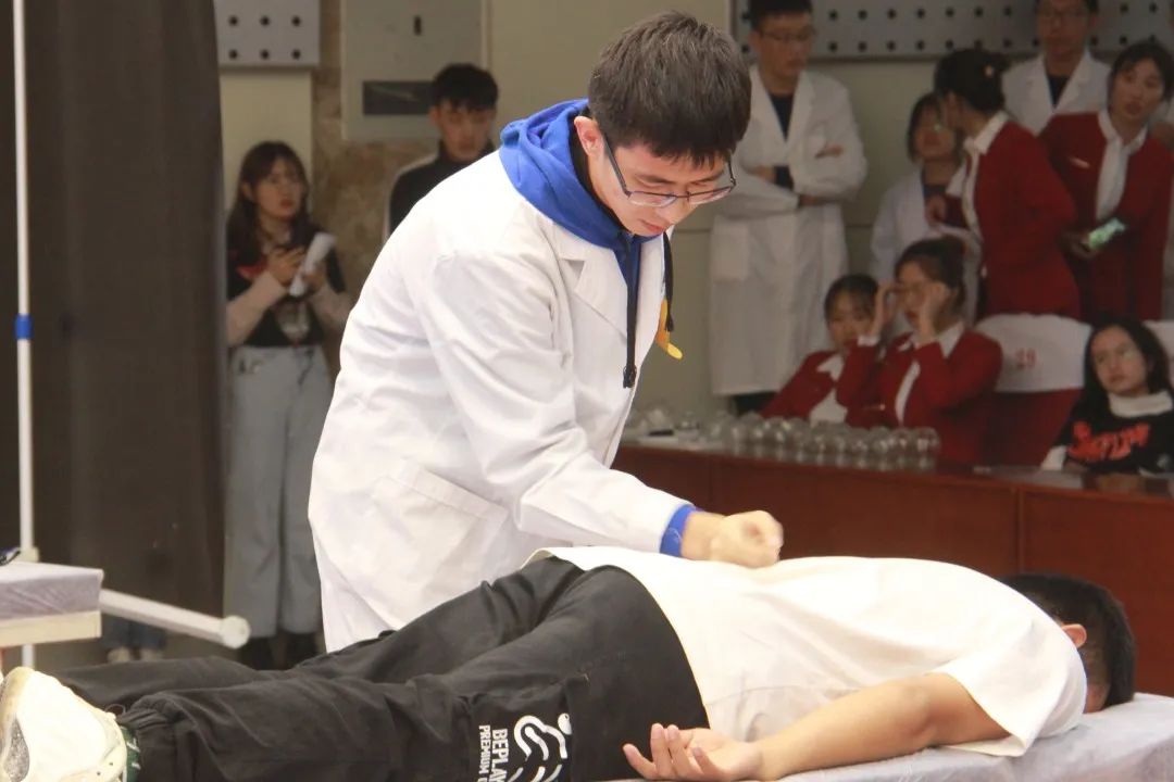 临床实践上,仓公班秉承“早实践、多实践、反复实践”的理念,构建了“四段式”实践教学体系,必修课中实践学时比例达到49%。同时,依托本校国家级中医综合实训室、针推育英基地(针灸虚拟仿真实验室)以及附属医院等实践基地实行校院一体化办学,开展2学年床边教学和32周实习教学,联合各实习、实践基地、地方政府、企事业单位开展8周小学期集中见习,实现医和药的贯通、理论与实践技术的贯通;设立针灸推拿技能等级考核制度;实行课赛合一,将全国临床技能大赛辅导纳入课程,鼓励学生获得学分。