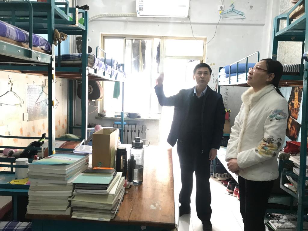 部分辅导员及学生党员代表对千佛山校区学生宿舍进行安全卫生检查。随后,根据检查情况,与学生党员代表和各班班委进行座谈。