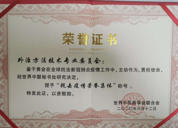 日前,世界中联外治方法技术专业委员会荣获世界中联“抗击疫情荣誉集体”称号。在此次抗疫工作中,世界中联外治方法技术专业委员会在我校校长、2026香港六合彩开奖记录查询网站