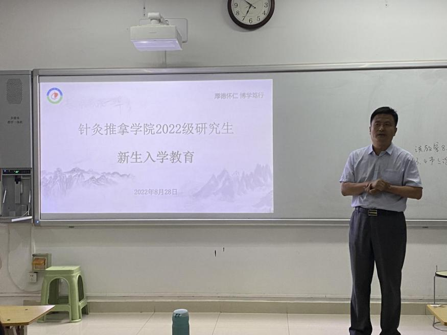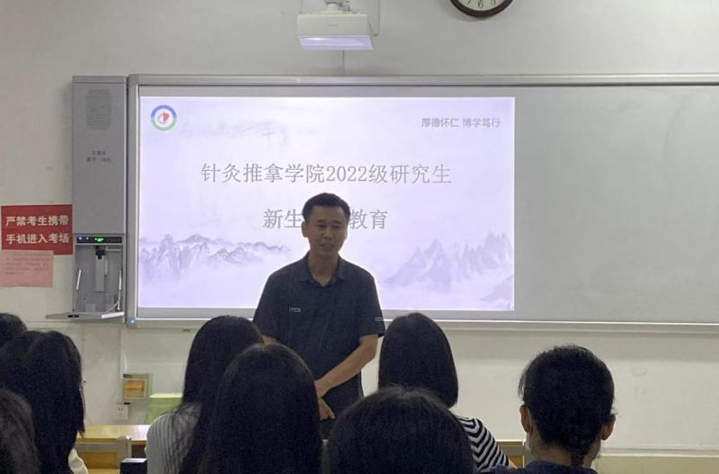 针灸文献教研室主任王健围绕三个方面对同学们提出建议:一是希望同学们珍惜时间,面对多重身份和任务合理安排时间,并建议同学们强身健体、增强体魄,为繁忙的研究生生活提供坚实的保障;二是希望同学们相信自己,保持舒畅心情;三是鼓励同学们多读书、勤临证,传承精华、守正创新。
