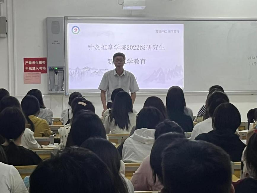 会上还举办了专业讲座。推拿教研室主任井夫杰结合学科专业特色、专业现状、发展前景等,寄语同学们一定要互帮互助,团结友爱;要知行合一,不能“躺平”,要提高科研创新能力,注重知识积累;要精于专业,通晓各科,专注临床,注重医患有效沟通,提升专业临床素质和综合能力。