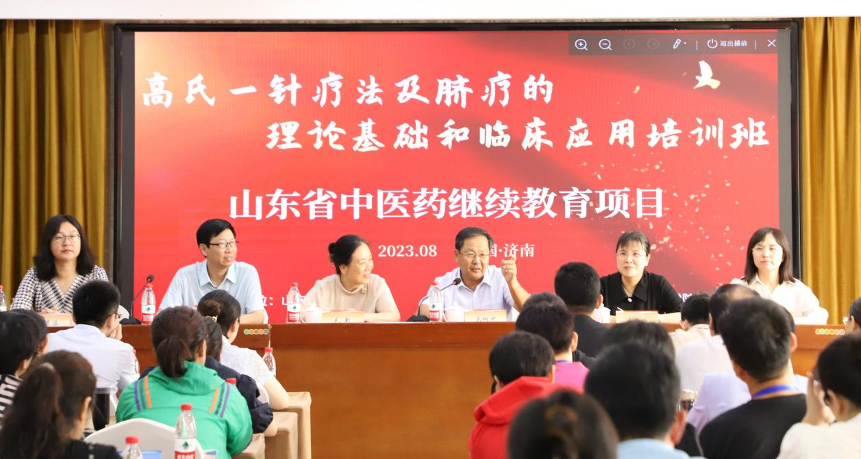 2023年8月19日上午,山东省中医药继续教育项目暨高氏一针疗法及脐疗的理论基础和临床应用培训班开班仪式在济南燕子山庄顺利召开。山东省卫生健康委中医药科教处二级调研员毛新,山东中医药大学原校长、全国名中医、首届岐黄学者高树中,山东中医药大学香港六合彩开奖记录2026