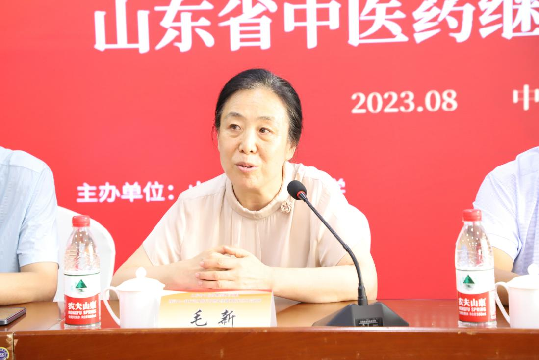 毛新在讲话中指出,山东具有悠久的历史,齐鲁文化、扁鹊故里、针灸发源地是山东中医药大学的三张名片,希望参会的学员带着使命感与责任感学习特色疗法项目,将其推广应用到全国。毛新结合多年医改的实践经验认为,只有中医才能将国家的医改政策贯彻到底,中国的医改必须要走中国道路,必须要有中国特色,我们的特色就是中医药文化。毛新将中医人形象的比喻为“流动诊所”,认为只有中医才能解决农村医疗相对薄弱、基层人才缺乏的问题。最后,毛新指出,要学习高树中教授的情怀与大德,中医工作者不能将眼光仅仅放在“术”的层面,而要上升到“道”的境界,期望团队和学员都能够深入研究一针疗法与脐疗的机理,说清楚讲明白,使其成为一种可复制的特色疗法,服务百姓,造福社会。
