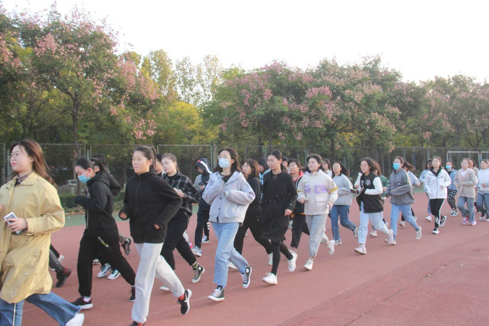 的学子们早已排列整齐,准备晨跑。