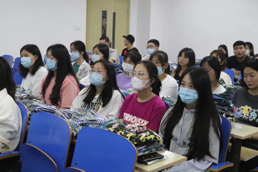 然后,郭立伟老师提醒新生要注意防诈骗。第一次离家独自生活的准大学生们在憧憬大学生活的美好时光的同时一定要增强防骗意识,不能掉以轻心,并反复强调大家要下载“国家反诈中心”APP,主动回避诈骗风险。最后,郭立伟老师就即将开始的军训对新生进行了嘱托:军训期间纪律严明,不得携带手机;军训期间要量力而行,注意安全;并且要注意个人健康,避免暴饮暴食。