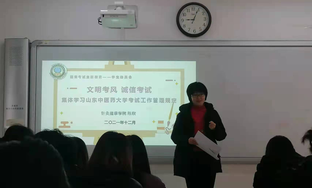 重点开展考试诚信教育,宣讲法律法规、校纪校规,倡导诚信考试,辅导员带领学生认真学习《山东中医药大学考试工作管理规定(校教字[2021]35号)》,向学生认真细致讲解考试纪律及违纪、作弊的认定及处理等内容,剖析相关规章制度条文,从真实案例出发,引导学生自觉增强遵规守纪意识,规范文明考试行为。