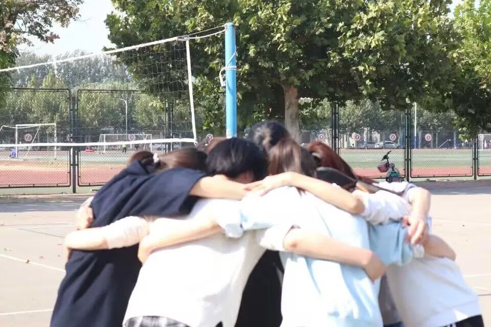 赛程过半,大家紧紧地聚在一起,手叠着手,一同喊出最响亮的“加油!”。即使领先也不骄傲,沉着冷静地发球过网;虽然暂时落后也不气馁,积极地迎接下一次的传球。队员们共同拼搏的身姿,为这秋日的校园增添了一抹靓丽的色彩!