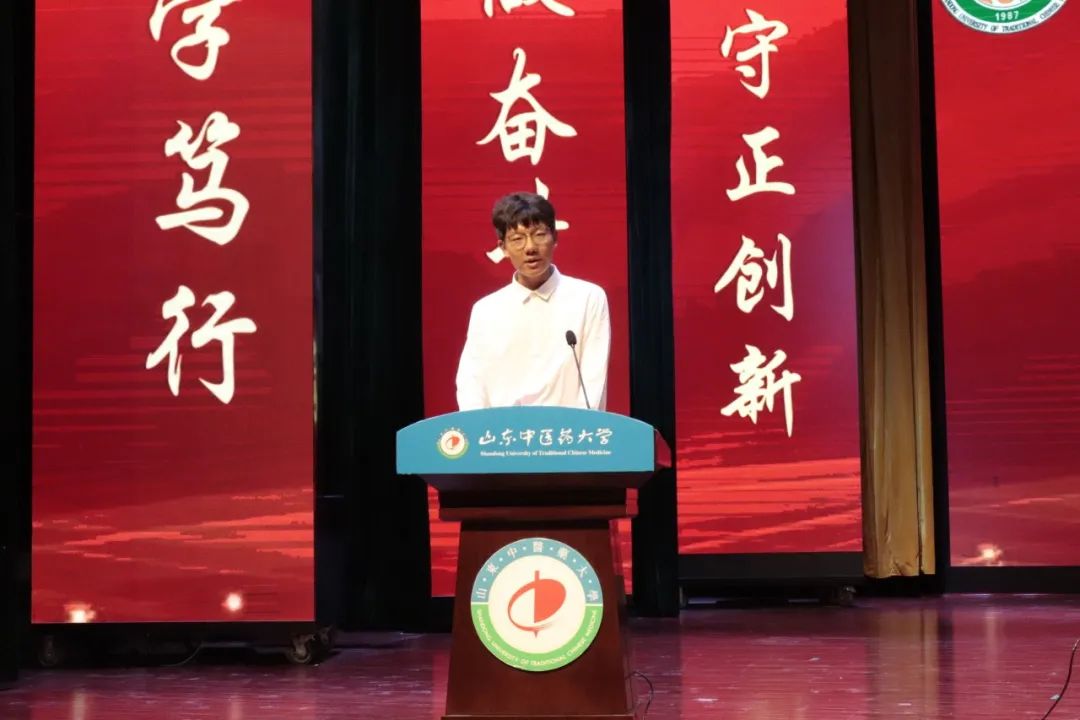 本科生新生代表林立东分享了自己开启人生新旅程的喜悦,作为2023级针推人,愿大家都能不枉此时,不负初心,勇做弄潮儿,为中医药事业贡献自己的青春热血!
