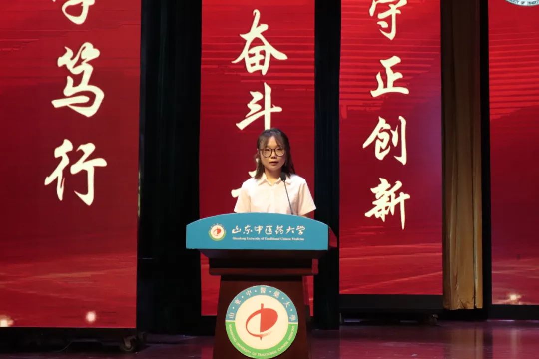 随后,由2022级杨裕博同学领誓,全体新生进行入院宣誓。“健康所系,性命相托!”同学们眼神坚定,声音激昂,铿锵有力的誓言昭示着他们对祖国中医药事业的热爱和为之奋斗一生的决心。
