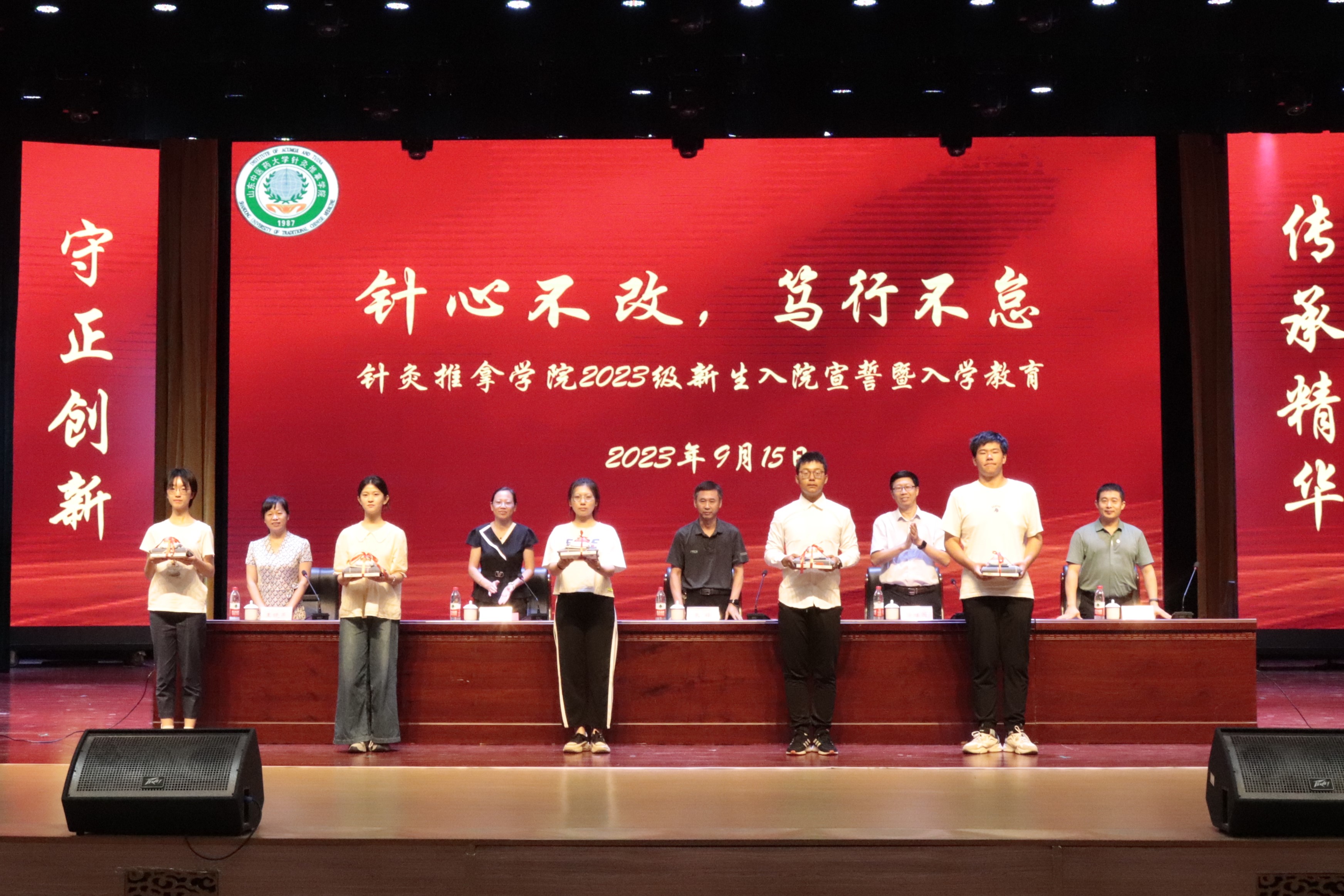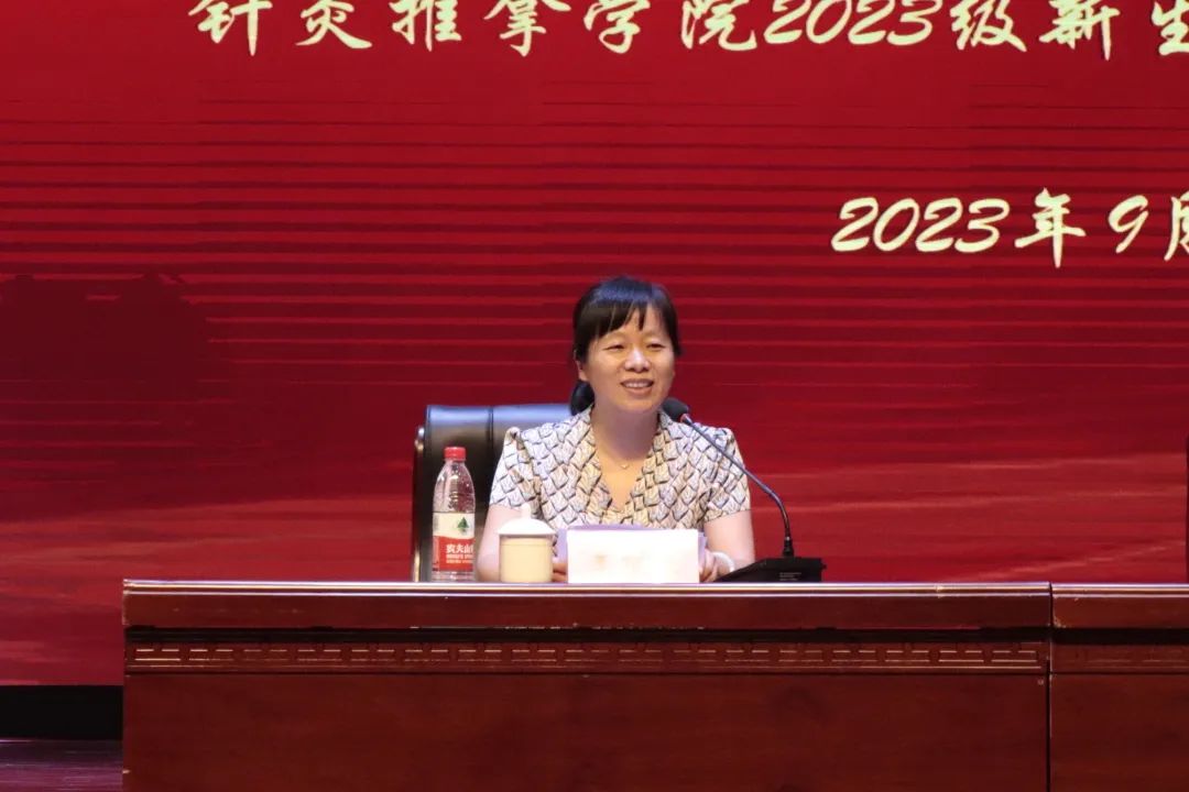 的学科特色与教学特点,展示了一系列学科成就,并对新生们未来的大学生活提出了几点希望:胸怀“国之大者”,做信念坚定、怀抱梦想的坚守者,在传承与发展中医药事业中踔厉奋发、勇毅前行;坚定文化自信,做奋楫扬帆、矢志不移的传承者,培根铸魂,赓续中医血脉;坚持守正创新,做勤学善思、勇于开拓的践行者,响应党和国家号召,做中医药事业接班人!