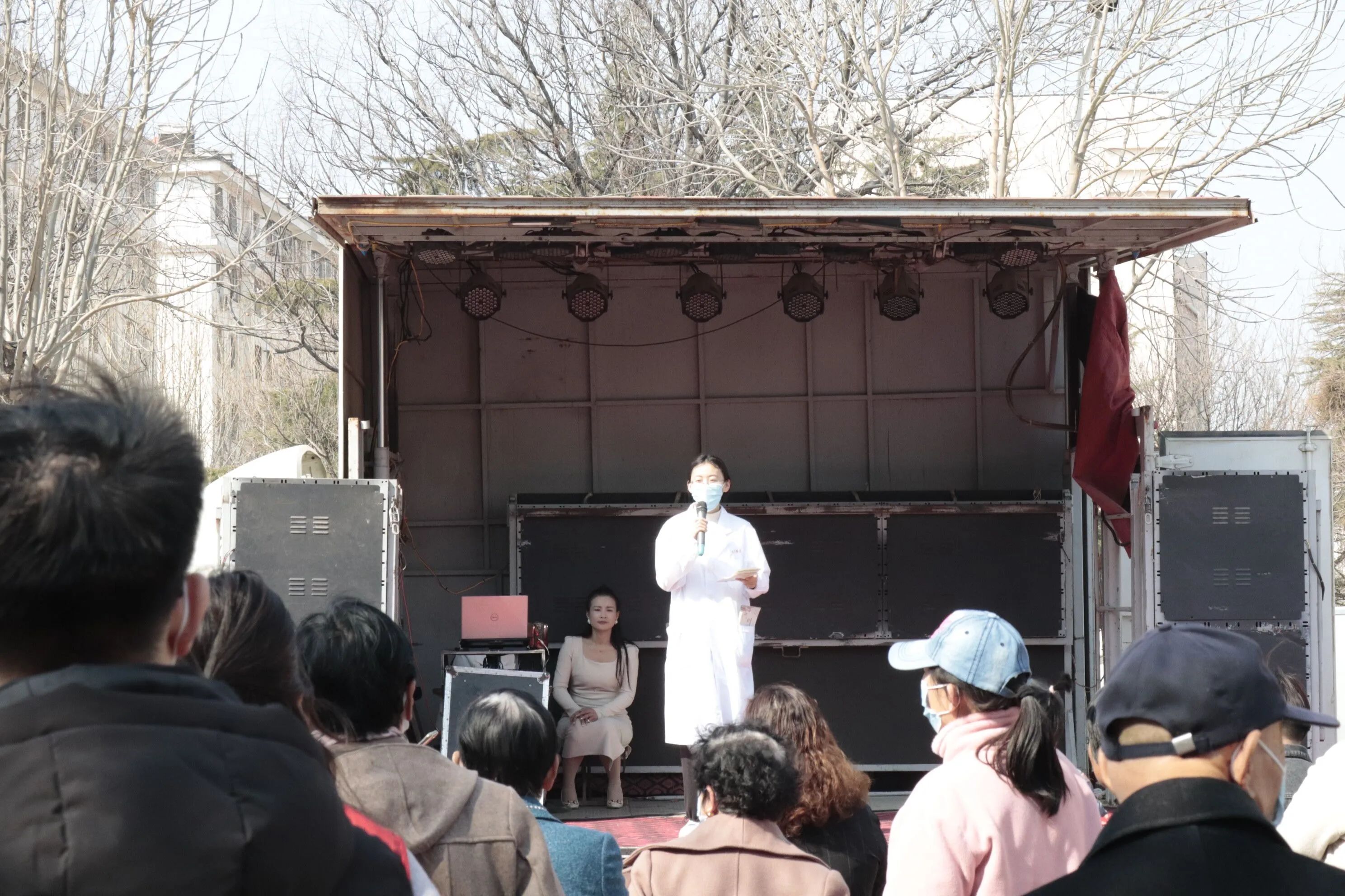 “针心灸行”社区服务队乘着和煦春风,走进乐天社区,联合社区药房在乐天广场开展了义诊活动。