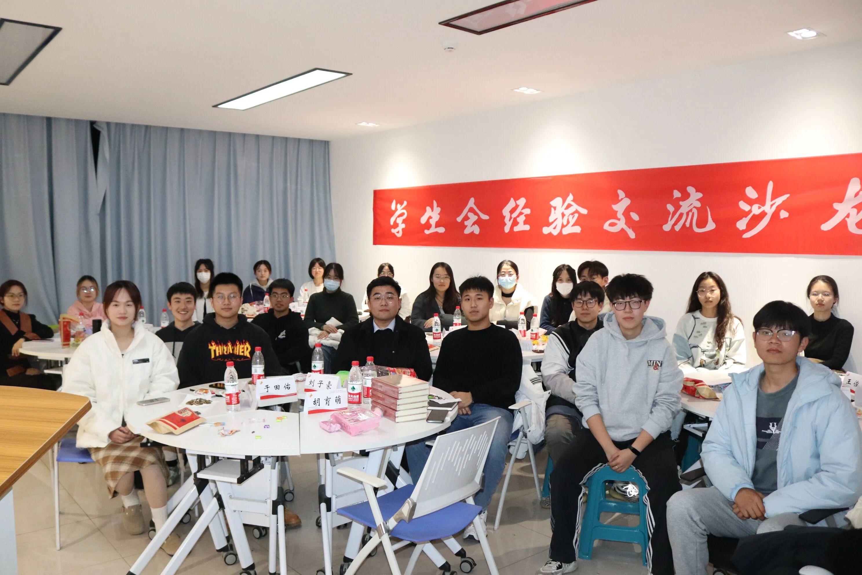 学生会主席刘子豪、副主席李安琪、副主席张晟恺。共同与会的还有两院学生会各部门负责人。