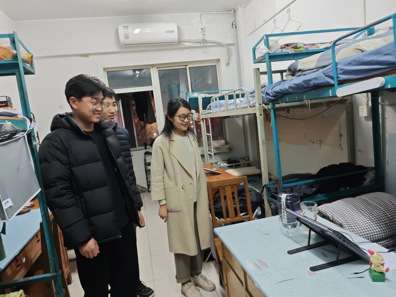 考察过程中,除了关注宿舍卫生,老师们还与在场同学进行了亲切交流,了解其生活习惯与学业近况,鼓励同学们要在学业上奋发图强,积极进取,设立远大的个人目标,叮嘱同学们在生活中应合理饮食,注意宿舍用电安全。