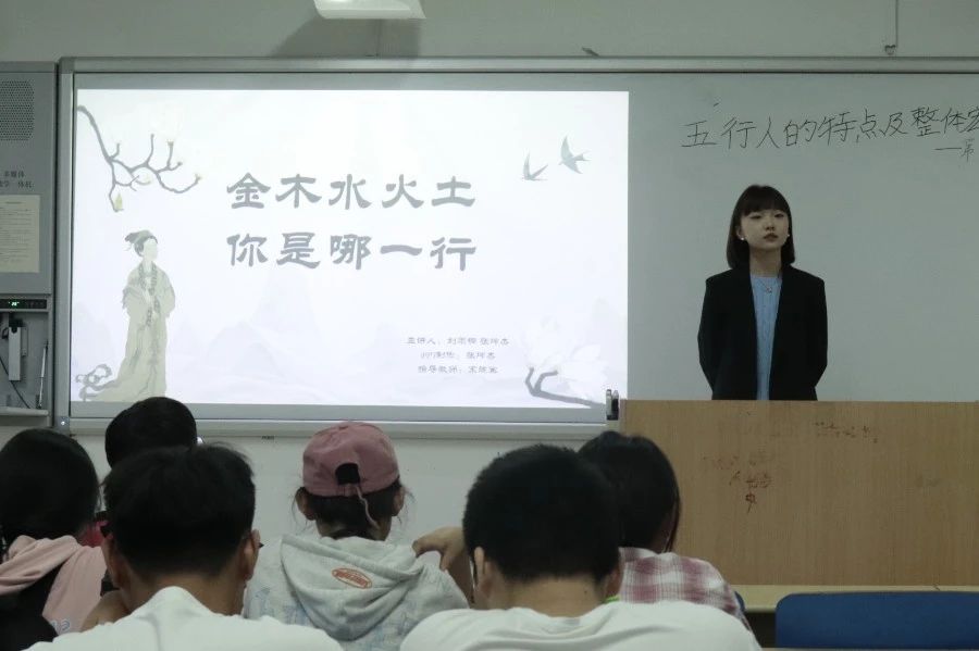 随后,张坤杰带我们分析了典型人物—林黛玉的五行人格。以绛珠仙子(草木)为前世、多愁善感、体弱多病的黛玉是“木型人”的典型代表。在接下来的互动环节中,同学们根据所学分析了自己的人格属性,亦积极发言去猜测主讲人的归属。面对不同的观点,张坤杰表示“五行人”并不是一个绝对的概念,一个人可能有着多种体质偏向。