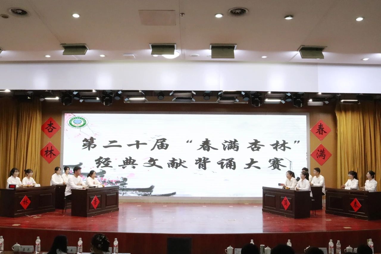 学生会承办的第二十届“春满杏林”经典文献背诵大赛在图书馆报告厅正式拉开帷幕。