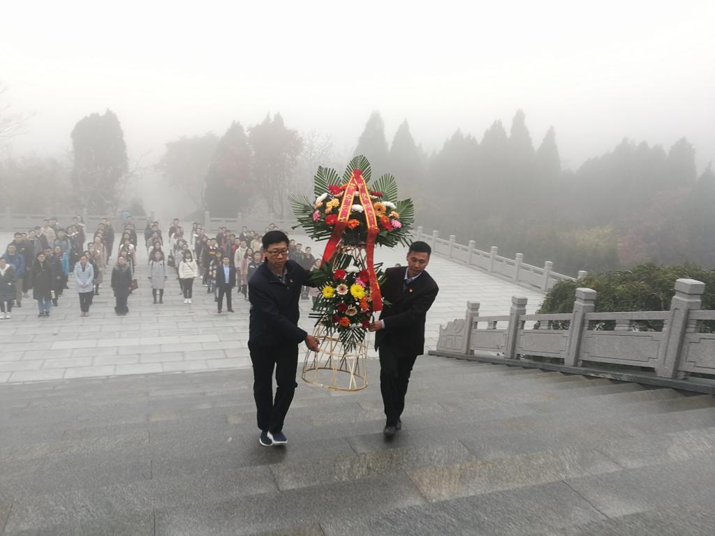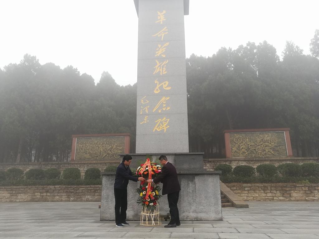 党总支书记王锋和院长杨继国代表同志们向革命英雄纪念碑敬献了花篮。