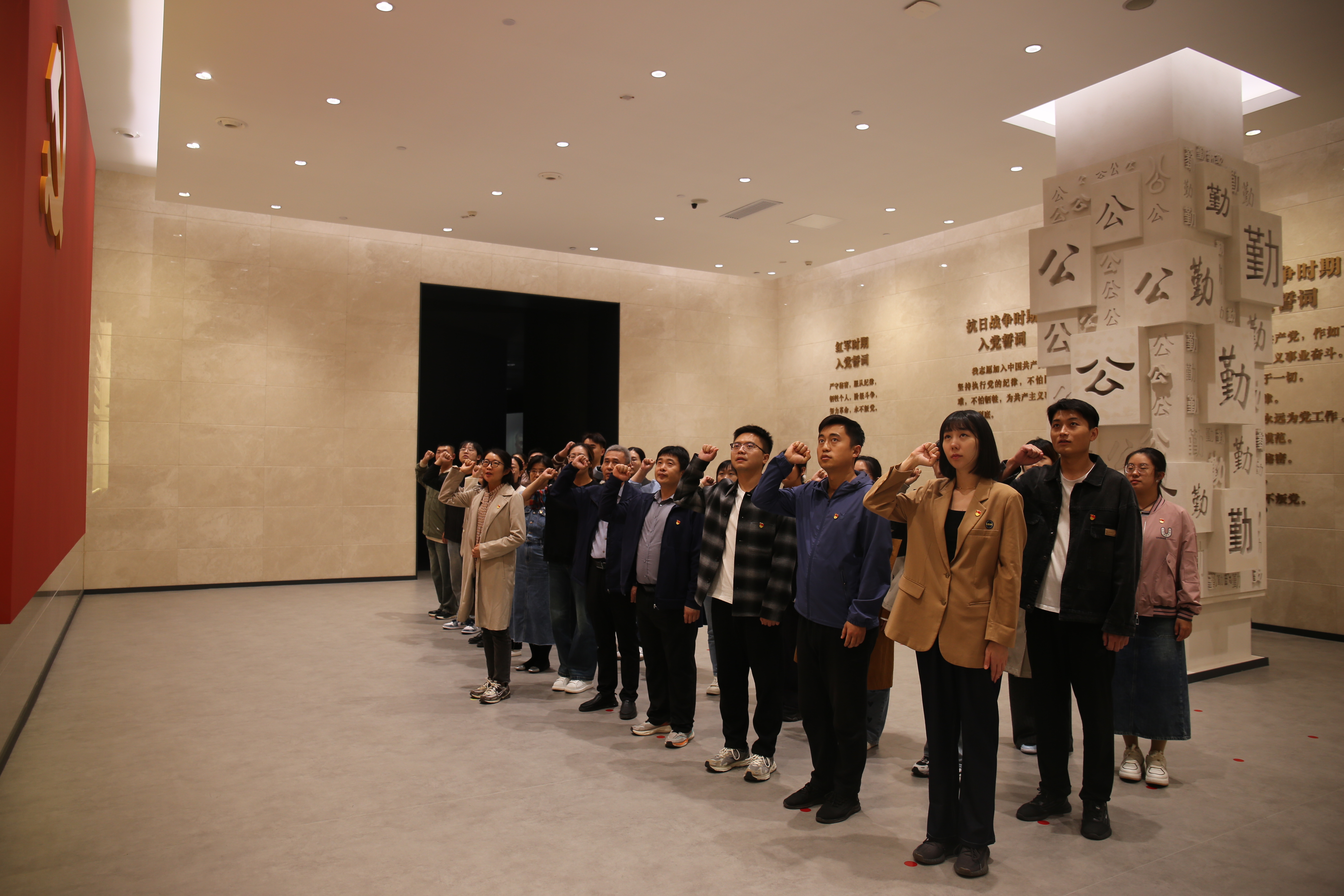 在讲解员带领下,党员们依次参观了序厅及“加强纪律性革命无不胜”“全面从严治党在山东”“弘扬优秀传统廉政文化”等主题展厅。通过聆听讲解、参观图文实录、观看警示教育视频等形式,全面了解了党在不同时期、不同阶段加强纪律建设和反腐倡廉工作的坚定决心和有力举措,系统了解了全面从严治党、加强党风廉政建设和反腐败工作的重要意义及突出成效。通过近年来查处的违法违纪典型案例,接受了一次深刻的党性洗礼和警示教育,进一步增强了纪律意识和规矩意识。在宣誓厅,全体党员在鲜红的党旗下庄严宣誓,重温入党誓词,感悟初心使命,坚定理想信念。