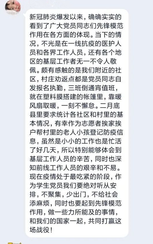 通过本次主题党日活动,全体党员深刻领会到新冠肺炎疫情防控工作的重要指导精神,进一步提高了政治思想和服务意识。大家纷纷表示,要在牢记党的根本宗旨中坚守初心、在全面履行职责中勇担使命,充分发挥党员先锋模范作用,利用好互联网+模式,通过自学、线上讨论等形式进一步加强理论学习,积极参与抗疫防疫宣传、志愿服务等工作,做好学生表率,带领全体同学坚定理想信念,强化责任担当,齐心协力、共克时艰。