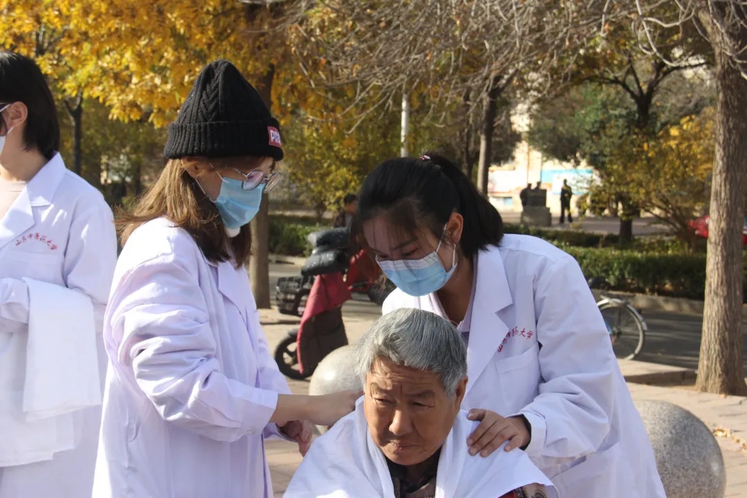 在义诊地点,服务队队员充满热情,对社区居民进行了推拿、压耳豆等服务项目。了解了居民们的身体状况,给他们“对症下药”提供了秋日养生建议,居民们也非常满意。