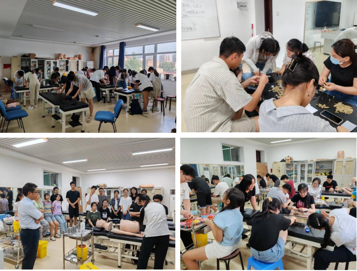 学生荣获全能冠军、亚军,个人单项一等奖等好成绩。尤其是2023’华佗杯全国高等院校针灸推拿临床技能大赛,我校以优异成绩荣获团体冠军、学生组个人全能冠军、临床教师组个人全能冠军和亚军,获得个人单项奖17项(其中,一等奖5项,二等奖6项,三等奖6项)。获奖数量和等级刷新了我校参加此项赛事的最佳成绩,也刷新了历届大赛单所高校最佳成绩。上图即为针推技能大赛培训现场。