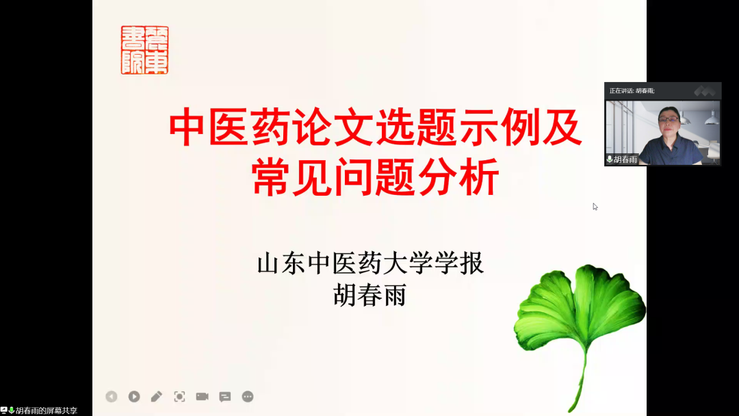 主讲人简介:胡春雨,医学博士,编审。先后担任《山东中医药大学学报》《山东中医杂志》的责任编辑、英文编辑。从事中医药学编辑工作28年,曾获中国科学技术期刊编辑工作“银牛奖”、中国高校科技期刊优秀编辑奖、华东地区优秀编辑奖等奖项。在核心期刊发表学术论文50余篇,参编著作6部,参加国家自然科学基金项目研究3项,教育部人文社会科学研究项目1项。2015年师从山东中医药大学丁元庆教授,从临床实践入手,学习运用经典理论辨治中医脑病的思路与方法。有着丰富的论文写作指导经验。