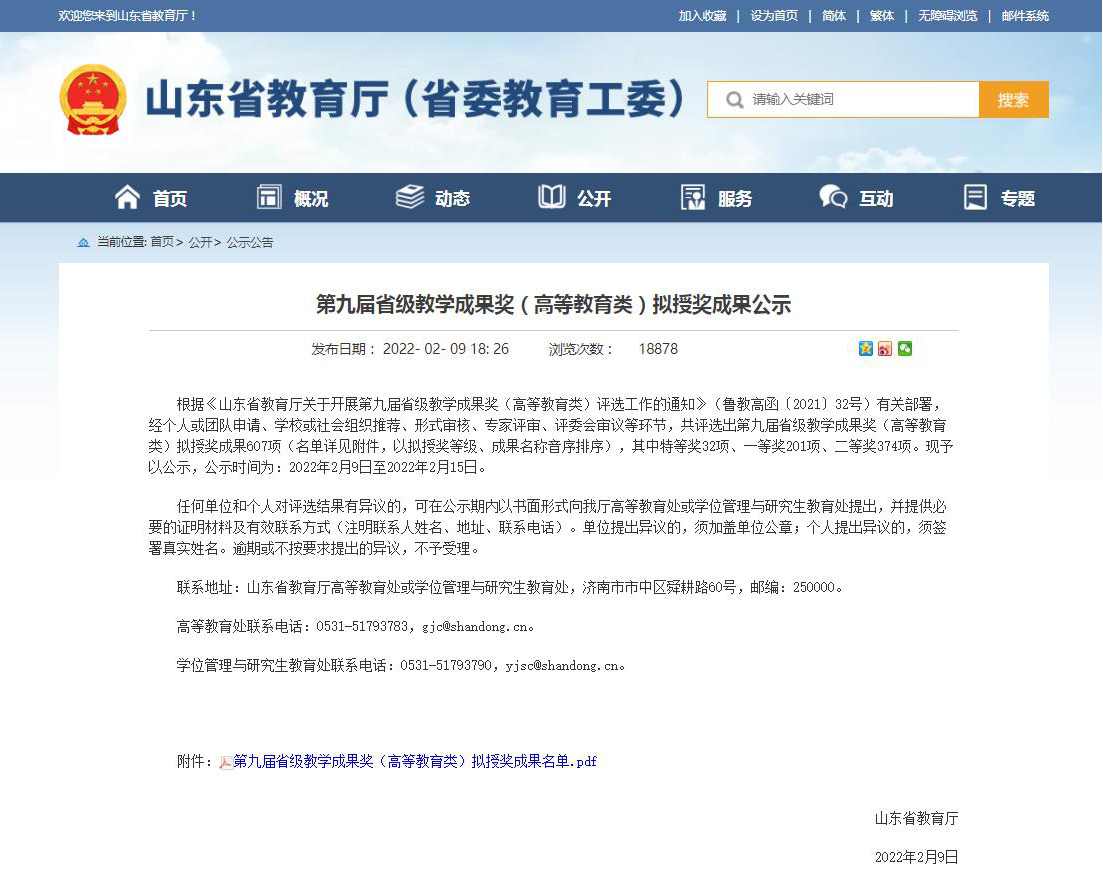 山东省教学成果奖每四年评选一次,旨在奖励和表彰全省各级各类学校和教师在教育教学改革和实践探索中取得的重要成果,是全省教育教学领域的最高奖项,也是反映学校教育教学水平的重要标志。本次获奖充分体现了香港六合彩开奖记录2026