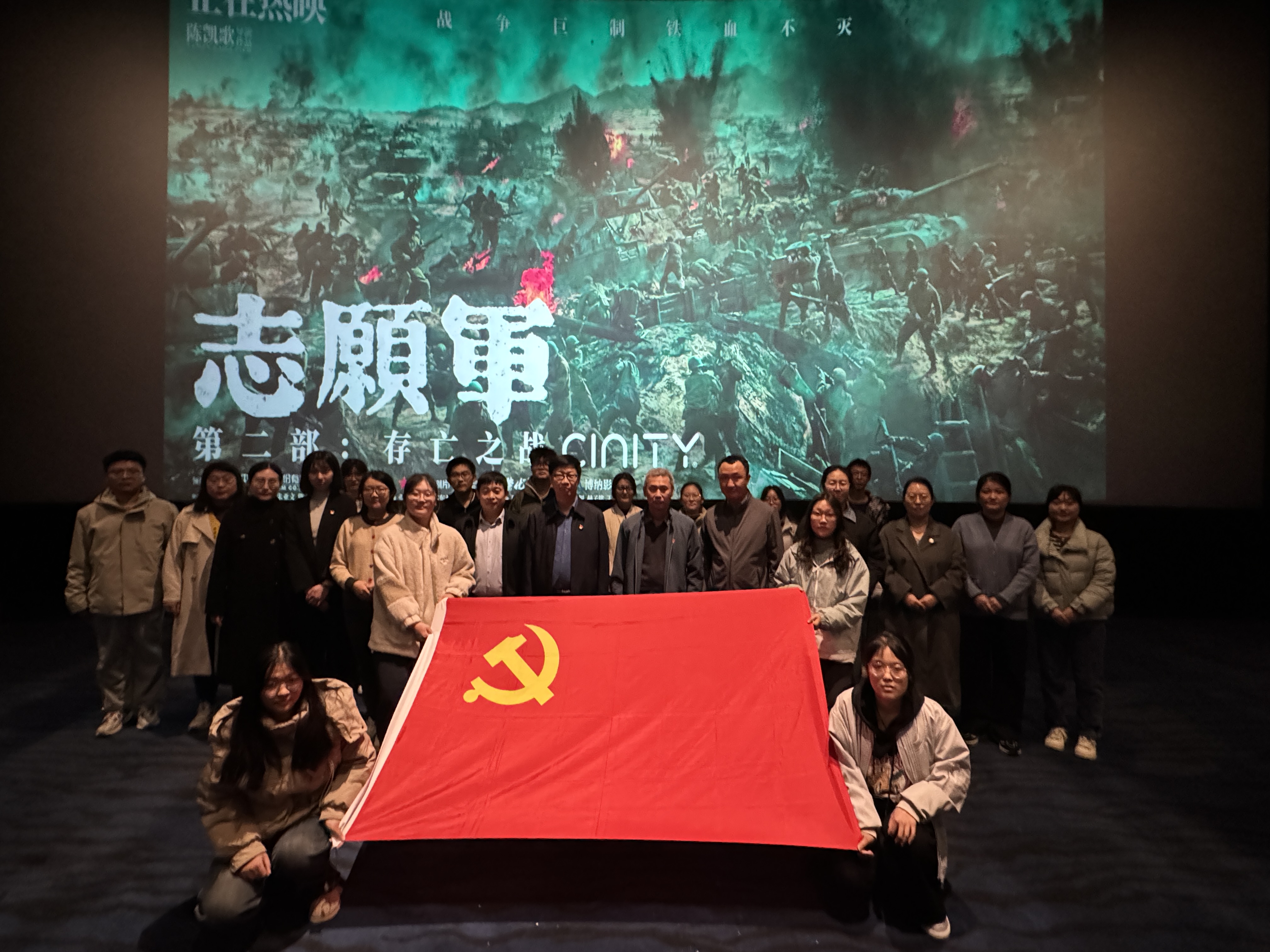 师生党员、入党积极分子观看红色题材电影《志愿军:存亡之战》。