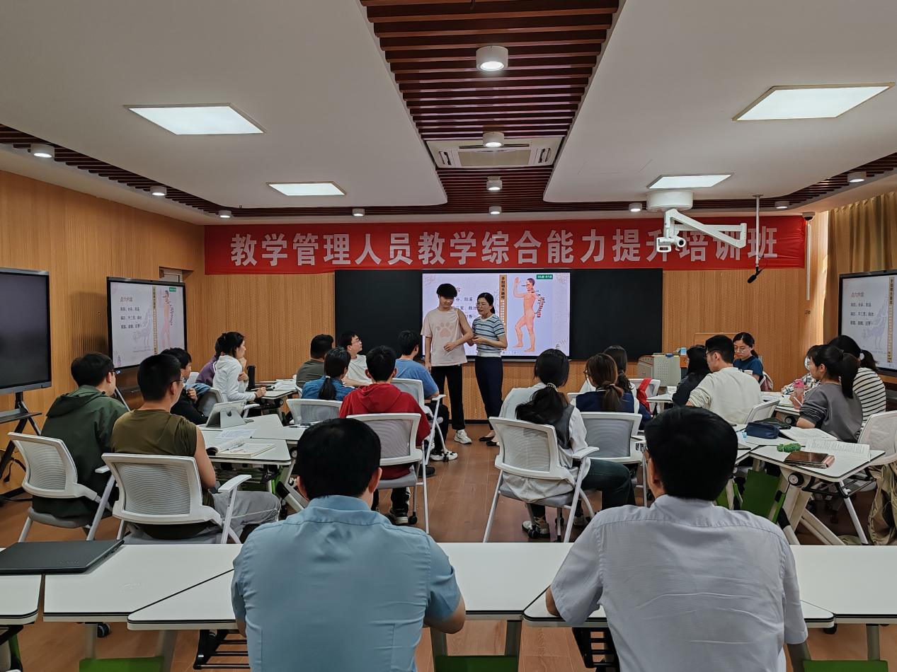 院长杨继国教授指出,张老师授课仪态大方,自信得体,教学设计巧妙,学生学习兴趣浓厚,重难点突出,抓住学科前言和热点,运用多种教学方法,如启发式、小组式等教学方法,教学效果显著,建议张老师授课时可以融入临床实际。王老师教学目的明确,实现了学生点穴技能的提升,建议可以进一步拓展教学内容。