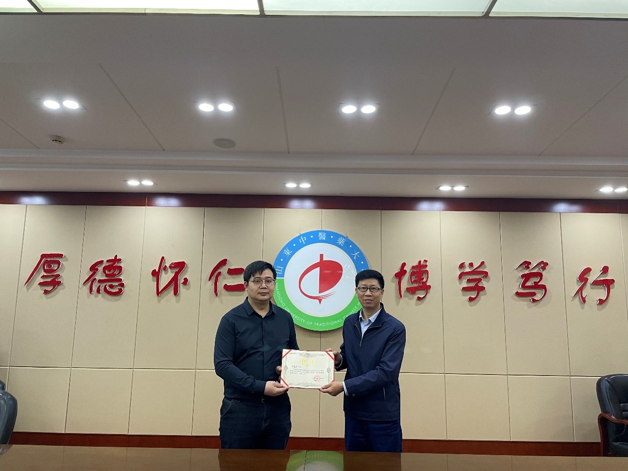 研究院聘请杜茂波博士为顾问委员会专家,杨继国院长为其颁发了聘书。杜博士是国内中药经皮给药制剂领域知名青年专家,师从国内最著名的中药凝胶膏剂制剂专家、中国中医科香港六合彩开奖记录2026